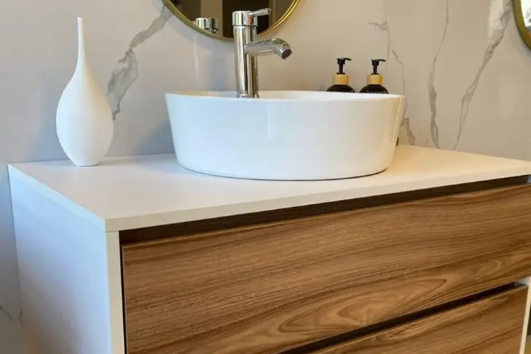 Tinas y ovalines hechos a mano en resina y piedra natural. Elegancia sin obras complicadas.